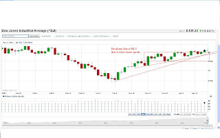 1st - You got to know which phase of the market we are in. Like talking about Dow its in the phase of accumulation and after a sustained bullish rally it is seen in the range of 78-7900 to 8000-8100 range. Now point to note here is that when an index or scrip rallies so much it needs to take a breather, so it continues to move upwards or stays in broad upward channel but shifts its bullish trendline to a bit on lower side. See the below chart: